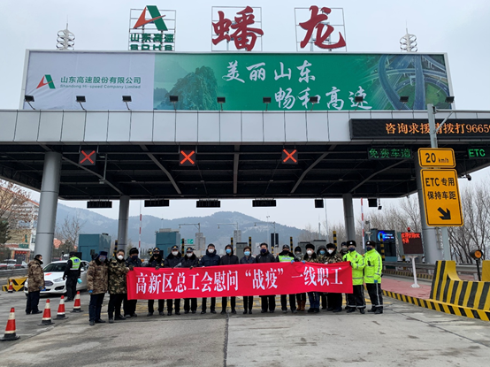 2月6日下午,春雪稍霁,寒意正浓。一辆载着御寒物资的车自高新管委会出发,驶向蟠龙、遥墙高速口,为“战疫”一线的职工送去温暖。 自新型冠状病毒感染的肺炎疫情发生后,防控一线职工的状况时刻牵动着“娘家人”的心,在走访过程中,区总工会了解到一线职工御寒物资不足,得知这一消息后,高新总工会立即行动,第一时间与服装厂家联络购置御寒衣物并送往疫情防控一线。 下午2时许,济南高新区党工委副书记,管委会常务副主任寇梅同志带领总工会同志到达蟠龙高速路口检查站对奋战疫情防控一线的工作人员进行慰问,并对检查站疫情联防联控工作进行指导。