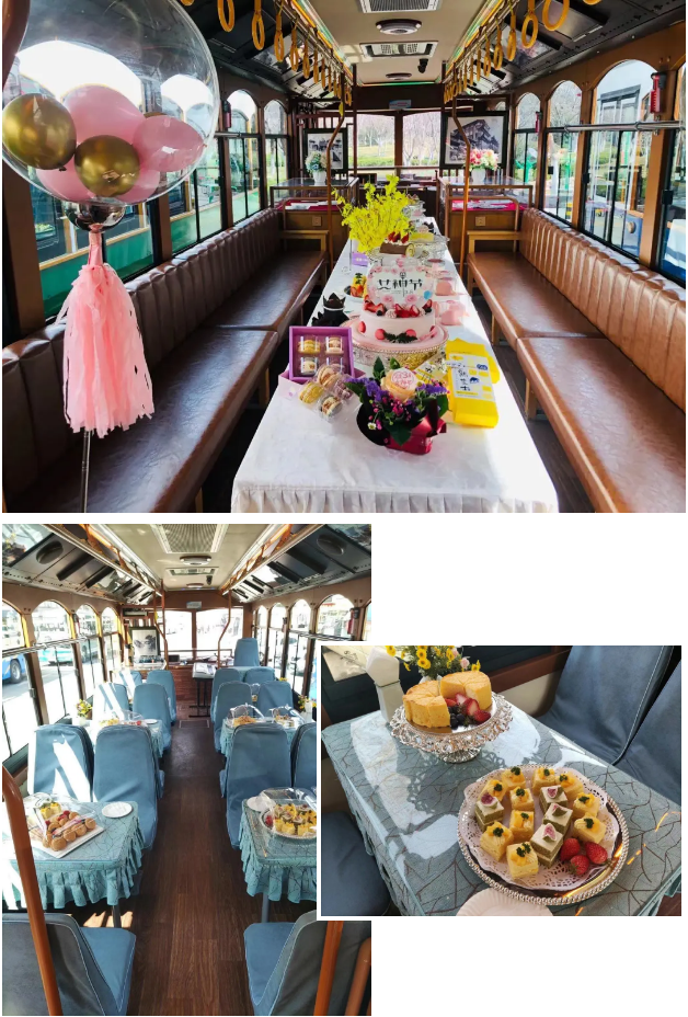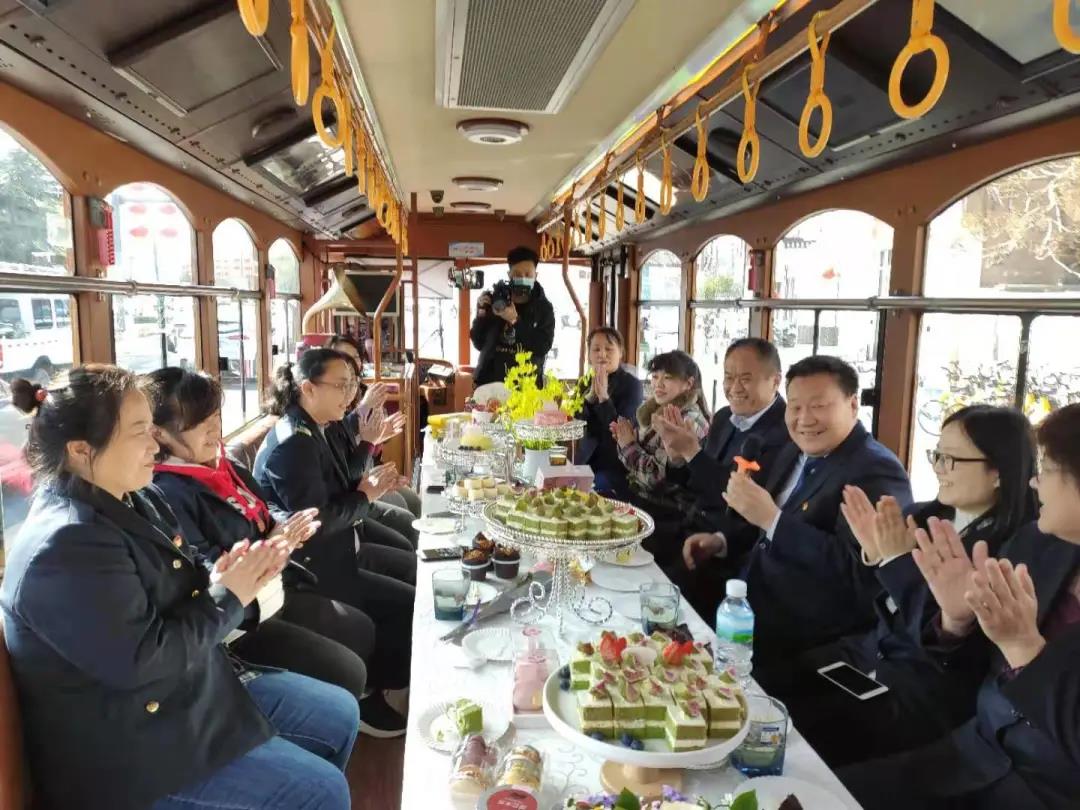 为了让女职工们感受到企业的温暖和关爱,济南公交文化旅游公司邀请了专业团队对车厢进行了精心的布置,精致的糕点、唯美的鲜花、优雅的音乐、浪漫的氛围全是女神们的最爱,铛铛车美丽蜕变为浪漫音乐巴士。