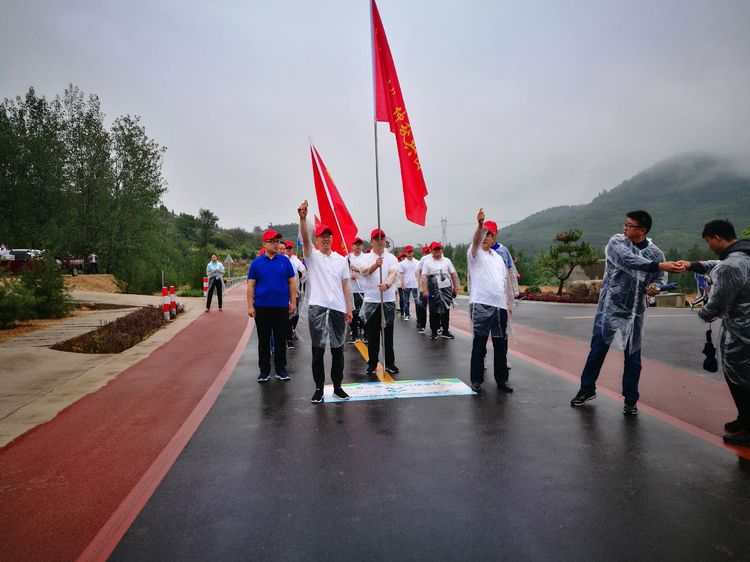 一大早,来自区总工会、教育、卫生系统,羊里镇政府机关以及九羊公司200多名健走队员齐聚在美丽的大舟山脚下,尽管天空下着雨,丝毫没有阻挡活动的进行和参加人员追求健康、传播健康的热情,大舟山上山青树翠,雨雾相连,清新宜人,为本次活动平添了几许浪漫。活动由羊里镇党委副书记、镇长吴勇主持,区总工会主席王庆喜同志为仲秋节主题健走活动致辞,健身教练带领全体人员做拉伸活动后,随着清脆的发令枪响,健走队伍在旗手的带领下迈着健康脚步,踏着爱的音符,阔步健走在羊里旅游大道上。