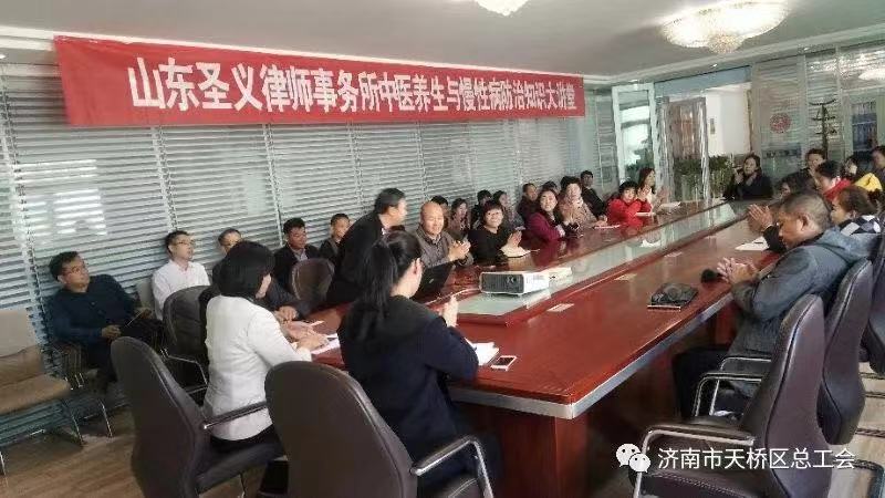 近日,为倡导健康的生活方式,关爱女职工健康,天桥区总工会在山东圣义律师事务所开展了“中国梦 健康家--家庭药箱进万家”2018年度“健康孝心带回家--慢性病防治知识”大讲堂活动,共有50余人参加。