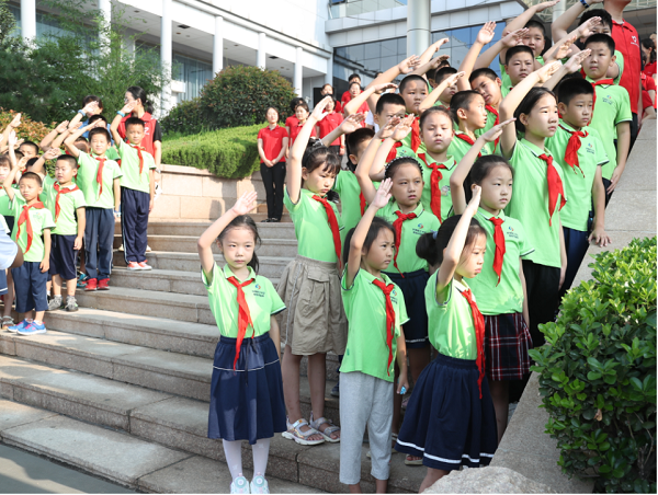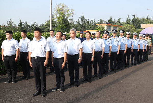 济钢集团机关部门干部、济钢消防救援站及鲍山派出所干警、济钢暑期托管班学生、阳光合唱团和社区居民近200人参加仪式。