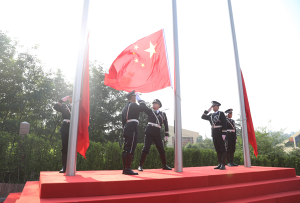 8点整,伴着《济钢力量》《解放军军歌》的合唱声,济钢集团党政领导步入升旗仪式现场。英姿飒爽的国旗护卫队队员,迈着坚定的步伐,护卫着鲜艳的五星红旗走向升旗台。伴随着雄壮的《义勇军进行曲》,五星红旗冉冉升起,全体人员肃立向庄严的国旗敬礼,表达最崇高的敬意。