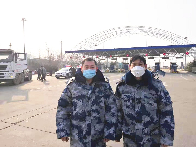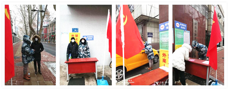 (区总工会党员防控突击队不畏严寒、严守岗位)