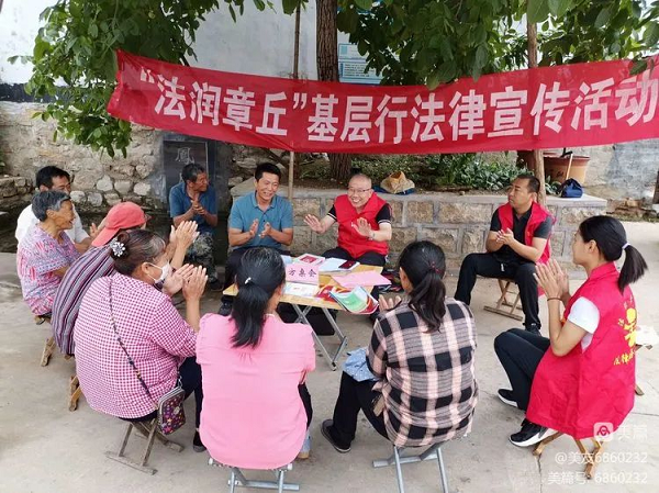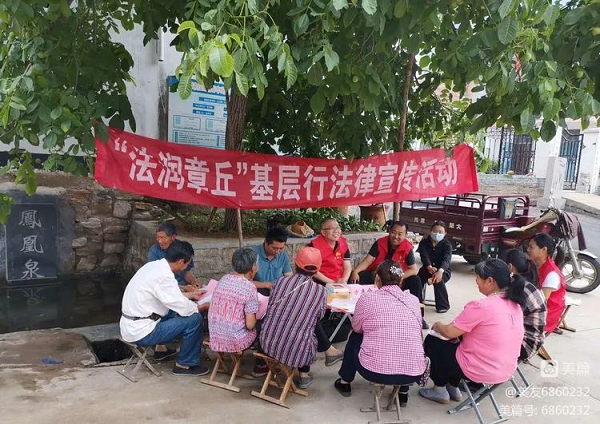 凤凰泉边,核桃树下,村民们围坐在方桌旁,工作人员将民法典、反有组织犯罪法、信访工作条例、反电信网络诈骗等宣传材料分发到村民手中,向大家宣讲相关法律法规规定,提醒大家遇事找法,用法律维护自身合法权益。