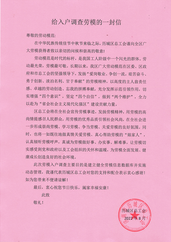 【历城】历城区总工会开展劳模入户调查行动