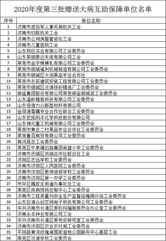 市总工会2020年第三批赠送的大病互助保障单位名单公布如下(详见附件),请及时关注查看详细信息。