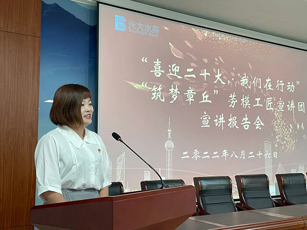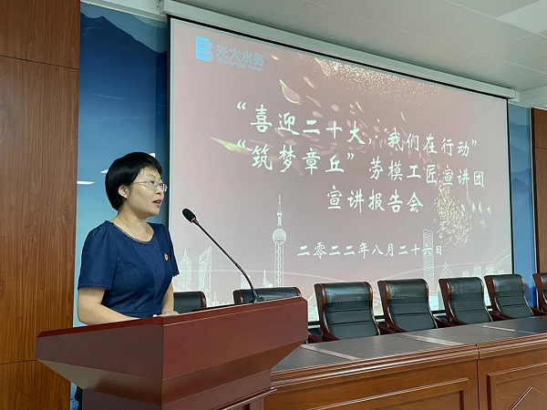 8月26日下午,“筑梦章丘”劳模工匠宣讲团到光大水务(济南章丘)有限公司进行宣讲,拉开了章丘区“喜迎二十大,奋进新征程”劳模工匠宣讲活动的序幕,区总工会党组副书记、副主席刘仁奎参加活动。