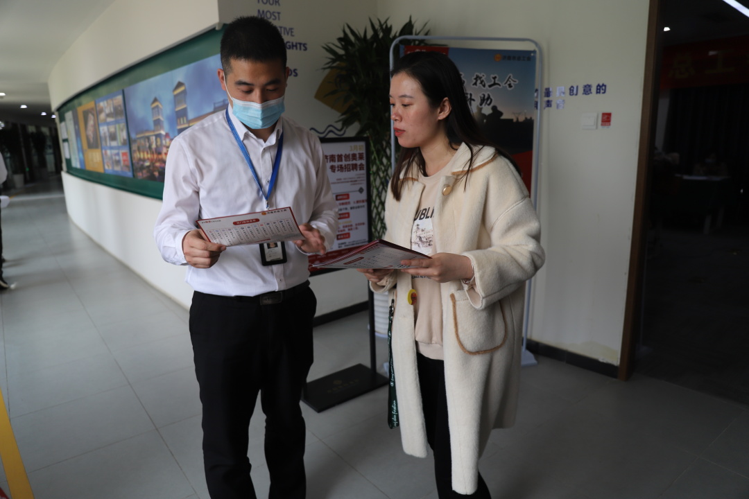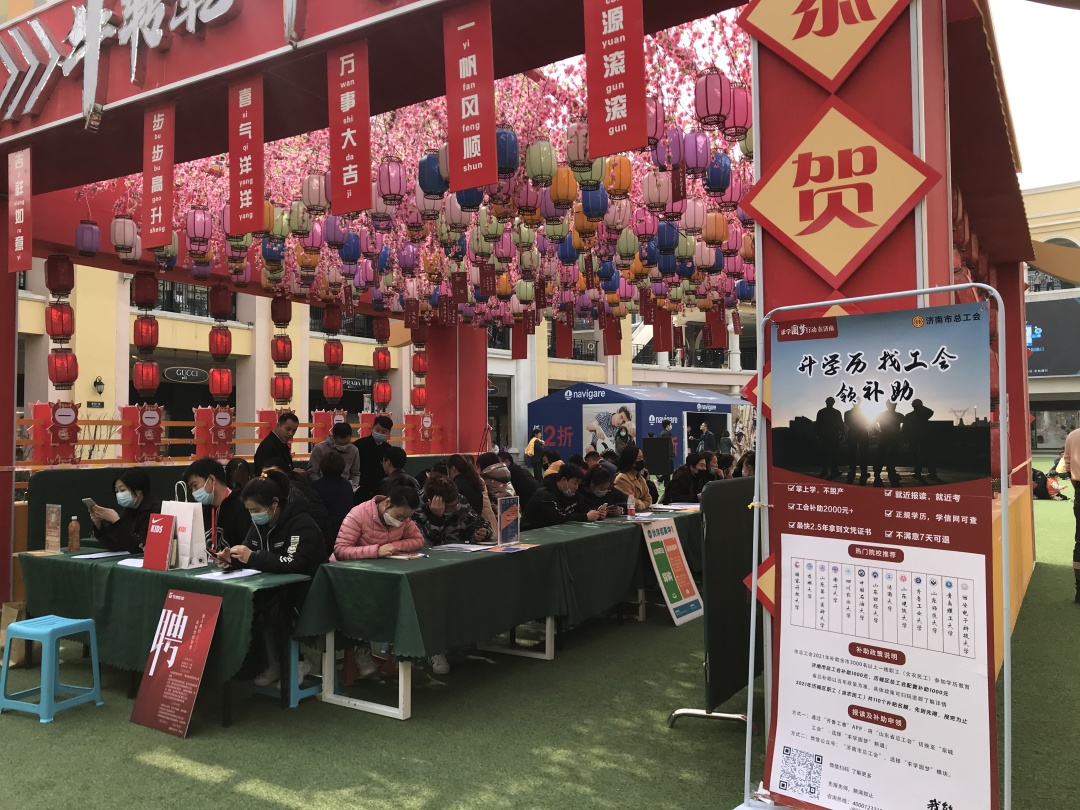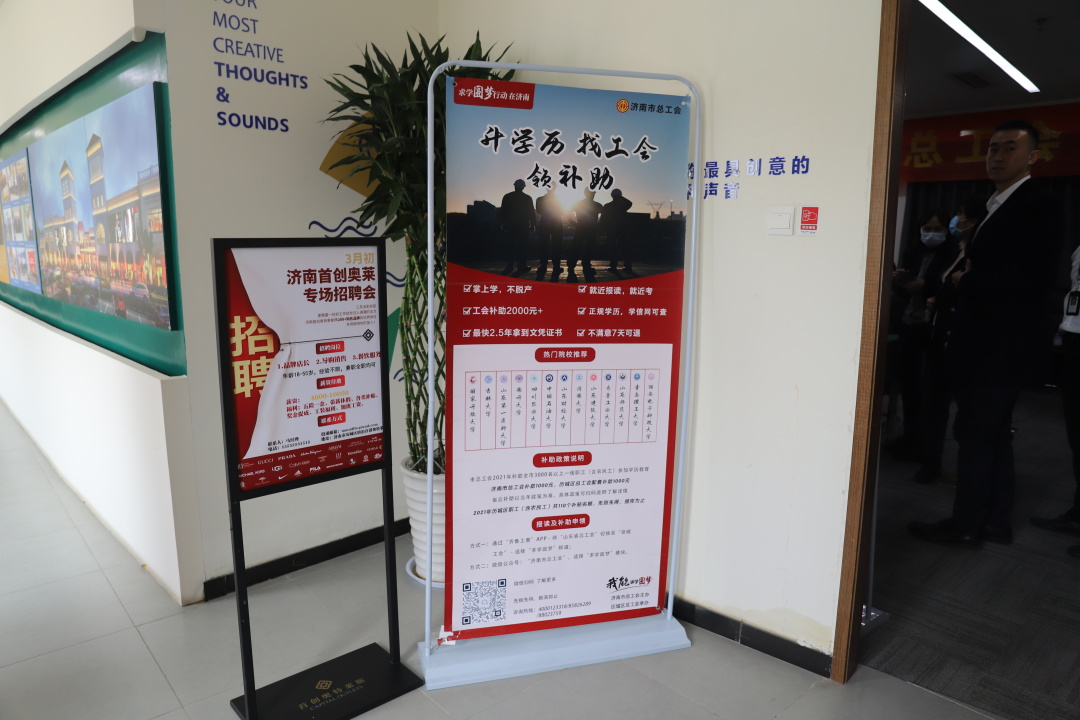 历城区总工会“求学圆梦行动”宣传海报走进历城区“春风行动”招聘会现场。