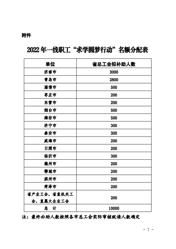 附件:2022年一线职工“求学圆梦行动”名额分配表