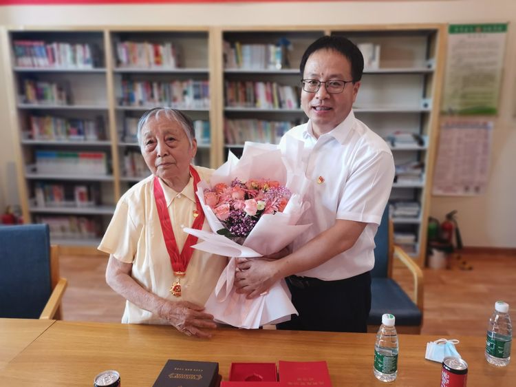 6月22日,天桥区总工会党组书记、常务副主席马立世一行5人,为工会离休党员袁训仪,退休党员郦觉初颁发“光荣在党50年”纪念章,并送去慰问品。