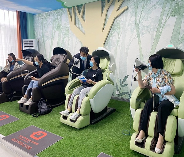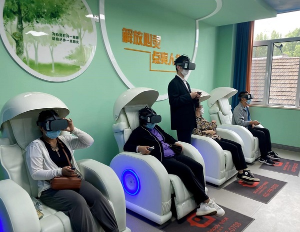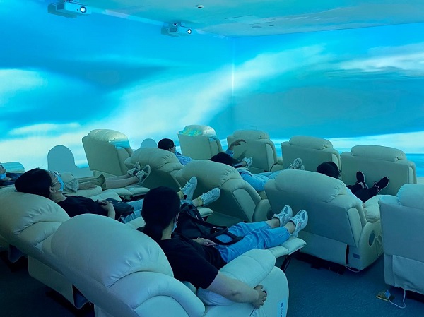 在沉浸式放松室,职工可融入三维立体投射技术和虚拟现实技术打造的放松场景中,跟随不同的放松场景和冥想引导,进入到不同的心理放松体验场景。