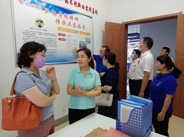 省轻纺工会的全体同志参观了样品室、明建建劳模创新工作室和党员活动室。