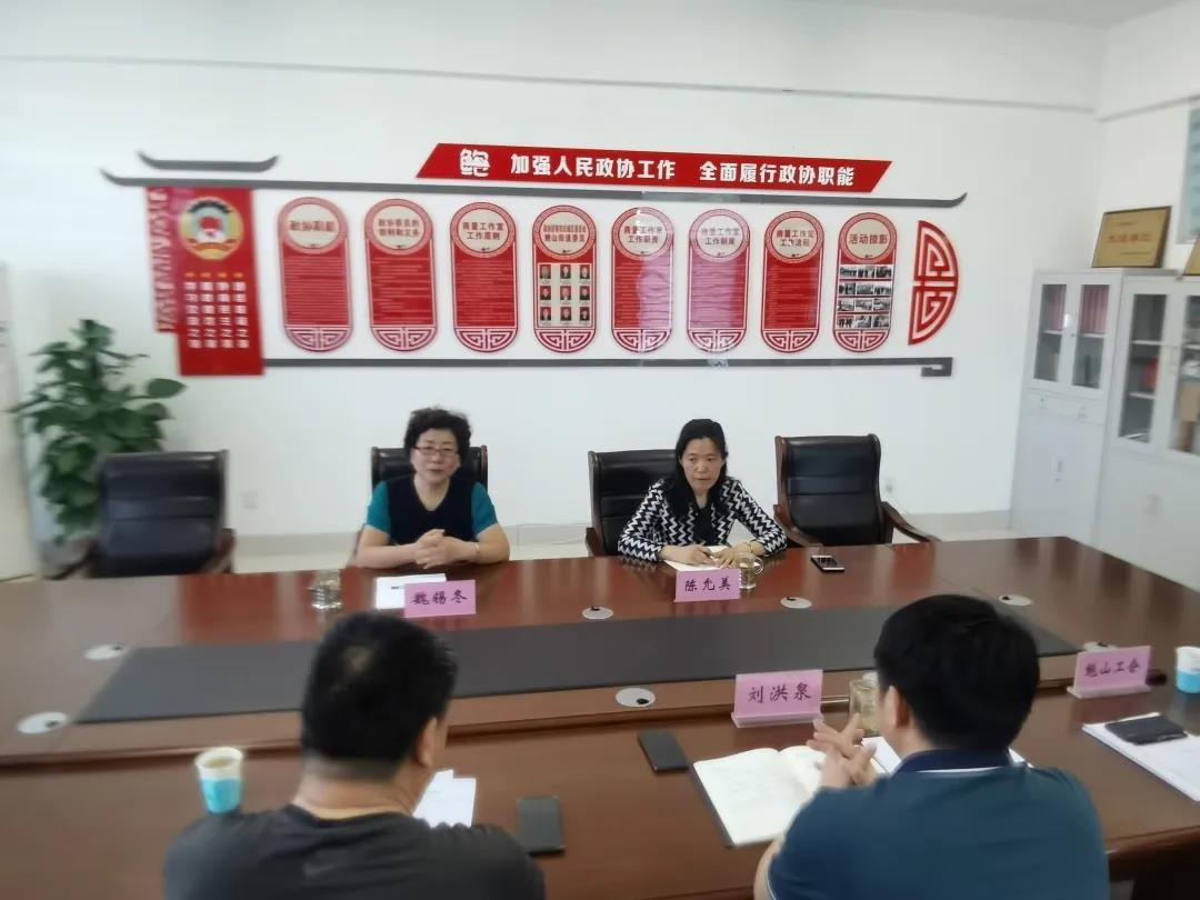 区总工会副主席陈允美,经审会主任魏锡冬一行人听取鲍山街道办事处副书记刘洪泉,鲍山街道工会主席汇报鲍山街道排查、摸底及建会工作开展情况。
