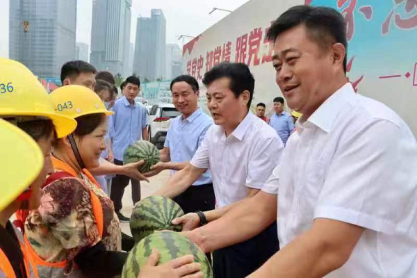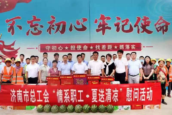 会后领导共同将西瓜、防暑降温饮品和食品等慰问品送到建筑一线职工及工友手中。济南分公司党总支书记、总经理初杨清表示:将以“全心全意、真心真意”为出发点,为职工切实谋福利,提升员工幸福指数,使工会工作的发展迈上新台阶。