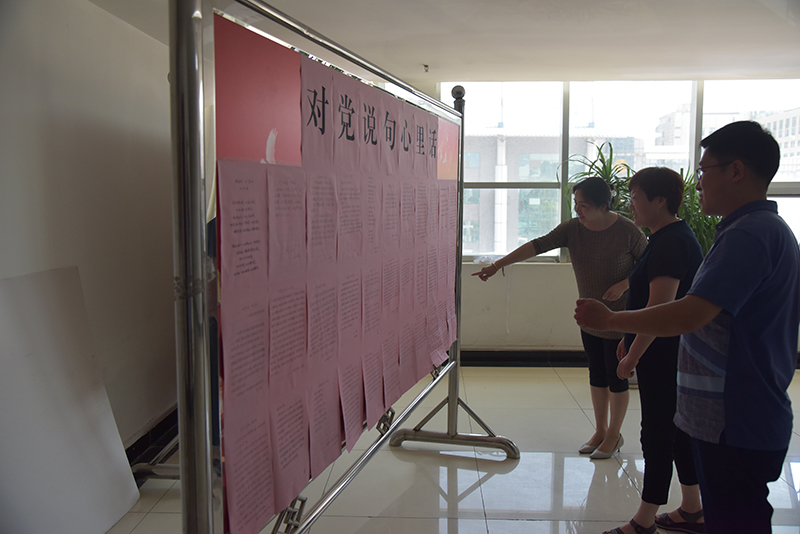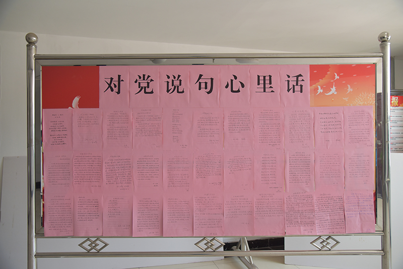 活动中,每名党员饱含真情,纷纷酝酿自己内心想要对党说的心里话,以诗歌或话语的形式手写在红色纸上。一字一句、字斟句酌地表达对党无限的忠诚和热爱,充满着对党99载荣耀辉煌的骄傲。中心党总支把党员的心声又集中张贴到展览板上,让大家相互交流学习,从中汲取营养并相互激励。