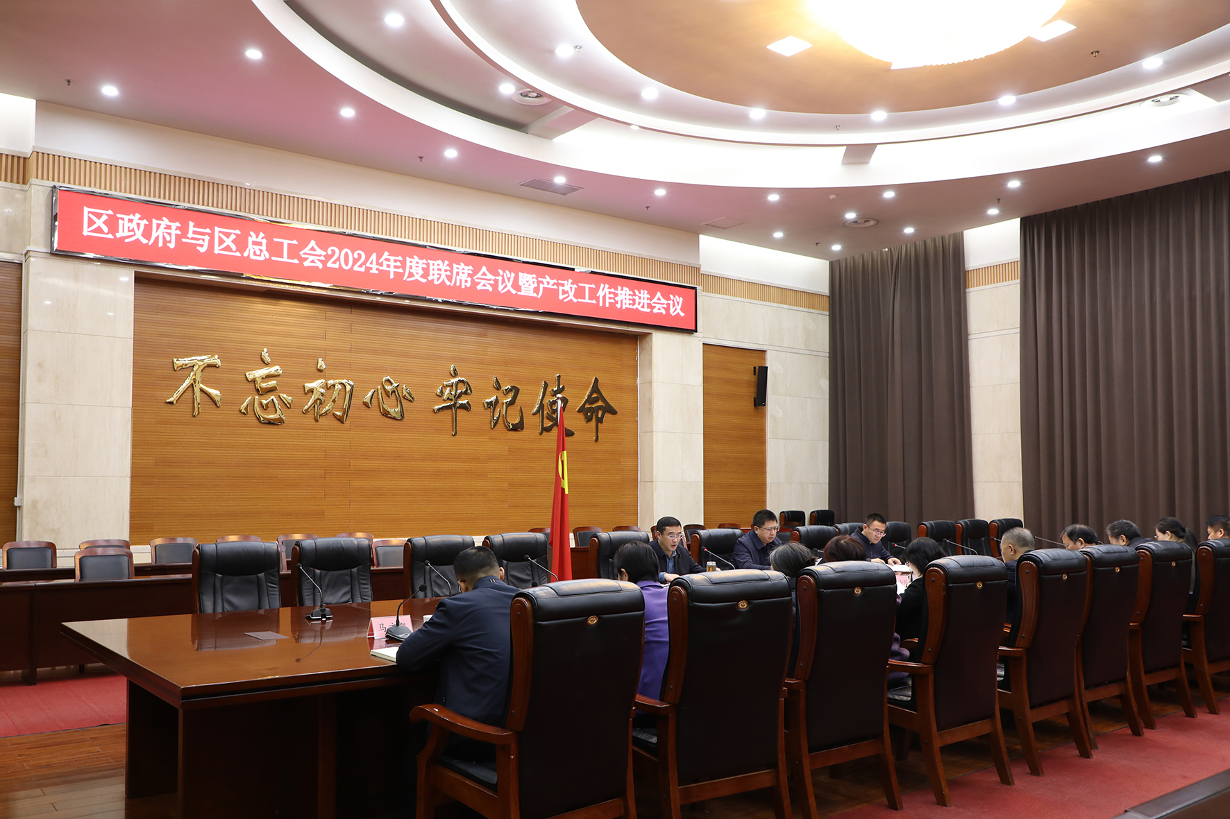 12月30日上午,章丘区政府与区总工会2024年度联席会议暨产业工人队伍建设改革工作推进会议召开,区委副书记、区总工会主席黄凯东,副区长朱陆益出席会议。会议认真贯彻习近平总书记关于工人阶级和工会工作的重要论述,深入学习《中共中央、国务院关于深化产业工人队伍建设改革的意见》,贯彻落实区委、区政府工作部署要求,研究有关文件,部署产业工人队伍建设改革工作任务。黄凯东指出,政府与工会联席会议制度是协商民主的重要制度安排,近年来,区政府与区总工会联席会议常态化推进,发挥了积极作用。今年各级工会在区委领导下,围绕全区工作重点积